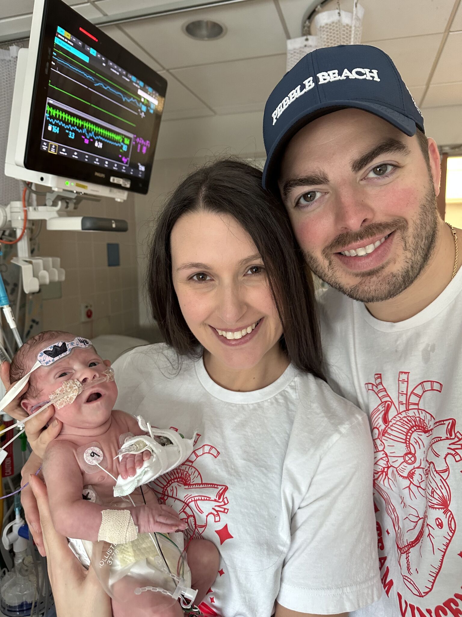 We lost our first pregnancy at just eight weeks, January of this year. In March, we found out we were pregnant with our “rainbow baby” on our 1 year wedding anniversary. We felt so blessed but also so scared knowing that we had just lost a baby and didn’t want experience that pain again. Every dr appt was filled with emotions, just waiting for the tech to confirm the heartbeat. At our 20 week anatomy scan, the tech checked all the organs and then went back to the heart and spent a good amount of time rescanning the heart, as silence filled the room. My husband and I both looked at eachother and knew something wasn’t right. We then heard the words, “there’s no easy way to say this but there is an abnormality with his heart, and we’re going to send you to a specialist for further testing”. Our heart’s dropped. Later that week we went to the specialist who diagnosed Vincenzo with “Tetrology of Fallot with Pulmonary Stenosis”. The week after we met with cardiology to discuss what this means and what his care would look like after birth. My husband and I just felt a huge weight on our shoulders but kept our faith and knew that God chose US to be his parents. A few weeks after this appt, I started having cramping which led to an ER overnight stay to make sure I wasn’t having contractions. A few days after that, I had a follow up appt with my OB. I told her about the cramping and that it felt it was getting worse. She wanted to do an exam and her words were “You are about 3cm dilated and in preterm labor. We need to get you to the hospital”. My husband and I were in shock and felt such a rush of adrenaline. We got checked into labor and delivery at 12:30 pm on August 12th. I was now 7cm dilated with contractions every few minutes. The whole thing felt like a dream and my husband and I kept having to tell ourselves we are having our son tonight.